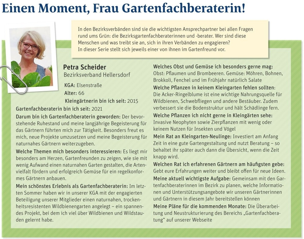 Die Fachberatung durch die Gartenfreundin Petra Scheider steht dem Vorstand beratend und unterstützend zur Seite.