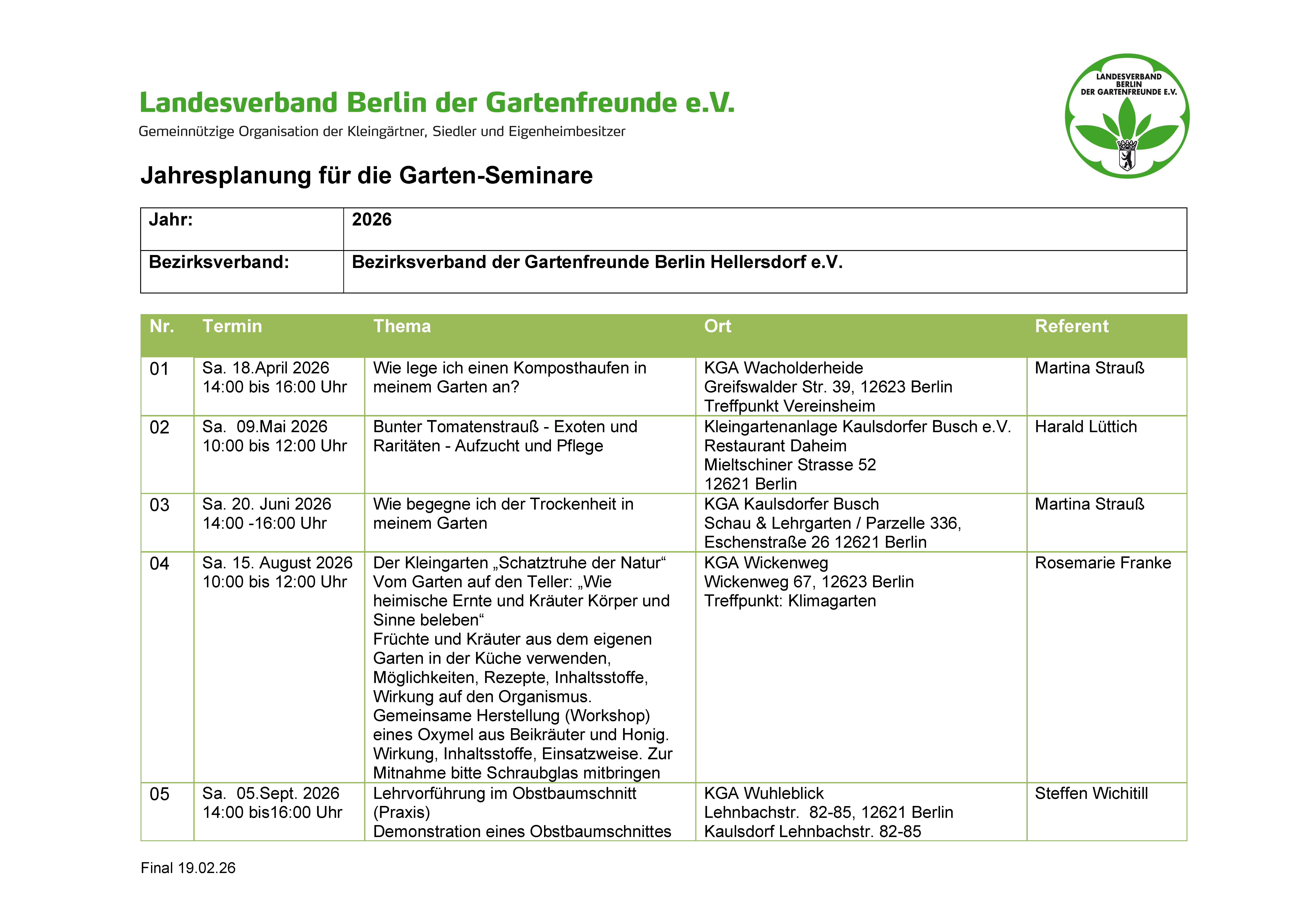Gesetzgeber geforderte kleingärtnische Nutzung in allen Parzellen überprüft und bei Nichteinhaltung entsprechende Auflagen erteilt. Weiterhin werden Ratschläge und Hinweise zur Nutzung des Gartens, zum Düngen, zu Pflanzenkrankheiten, zum Pflanzenschutz und zur Auswahl der Pflanzen gegeben. Die monatlichen Pflanzenschutzhinweise werden in der Homepage nach dem Erscheinen aktualisiert.
